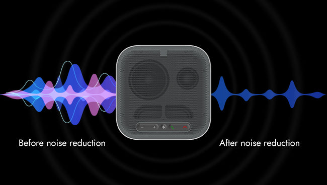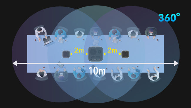Digitales Mikrofonarray mit hohem Signal-Rausch-Verhältnis, Primärmikrofon und erweiterte Mikrofon-Kaskadendesign, automatische Beamforming 360° omnidirektionale Langstrecken-Sprachaufnahme, verbessert effektiv die Qualität von Audiokonferenzen im Konferenzraum.