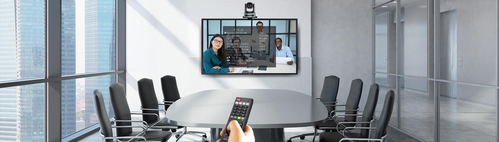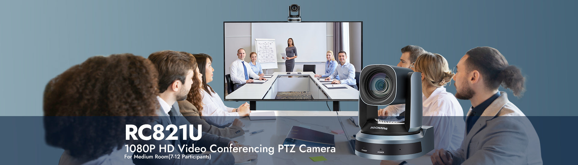 RC821U puede obtener con precisión el número y la distribución de los participantes mediante la detección facial, controlar inteligentemente las cámaras PTZ para capturar a todos los participantes en la pantalla y ajustarse a la mejor visualización.