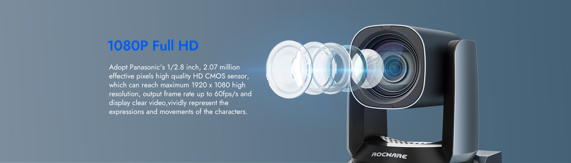 Adopte el sensor CMOS HD de alta calidad de Panasonic de 1/2.8 pulgadas y 2.07 millones de píxeles efectivos, que puede alcanzar una resolución máxima de 1920 x 1080, una tasa de fotogramas de salida de hasta 60fps y mostrar video claro, representando vívidamente las expresiones y movimientos de los personajes.
