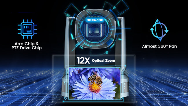 RC821U soporta un zoom óptico de 12x y un zoom digital de 16x para captar cada detalle en un rango de aproximadamente 12 metros. El rango de rotación horizontal del PTZ es cercano a 360° mientras que el rango de inclinación vertical es de -30° a +90°.