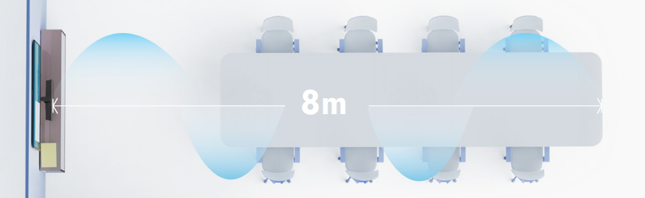 Il est équipé de 6 microphones à formation de faisceau intégrés qui détectent automatiquement la position de l'orateur et s'ajustent pour capter le son avec précision. Cela garantit une capture audio claire et équilibrée jusqu'à 8 mètres, éliminant le besoin de réglages manuels et améliorant la qualité de la communication.