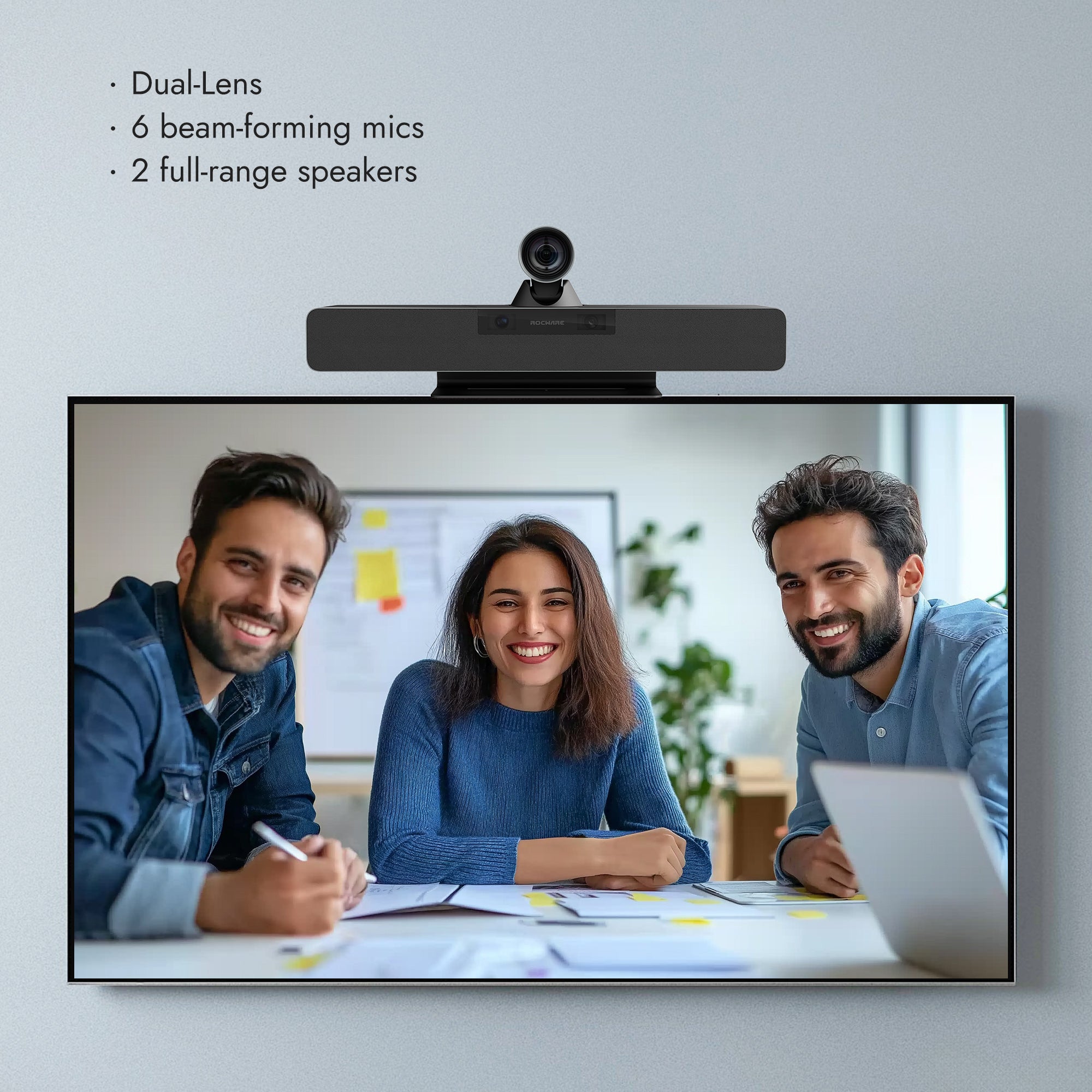 See how the RB20 4K All-in-One Videobar brings your medium-to-large meeting rooms to life. With AI-powered panoramic and close-up cameras, built-in microphones, and full-range speakers, every participant is seen and heard clearly—no manual adjustments needed.