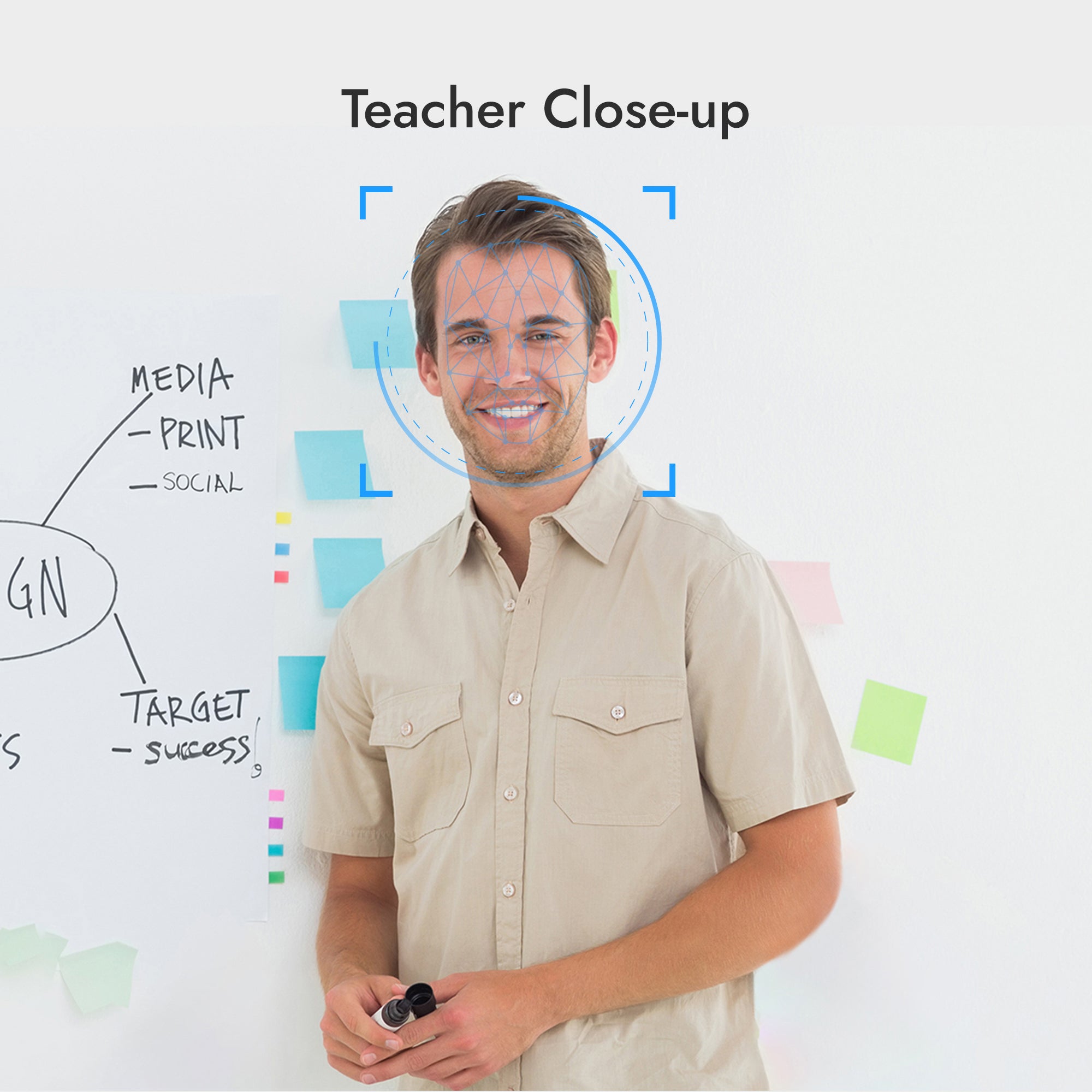 Ses algorithmes puissants permettent un passage précis et en temps réel entre les plans larges et les gros plans, de sorte que l'attention reste là où elle doit être — que ce soit sur le tableau ou sur un élève en particulier.