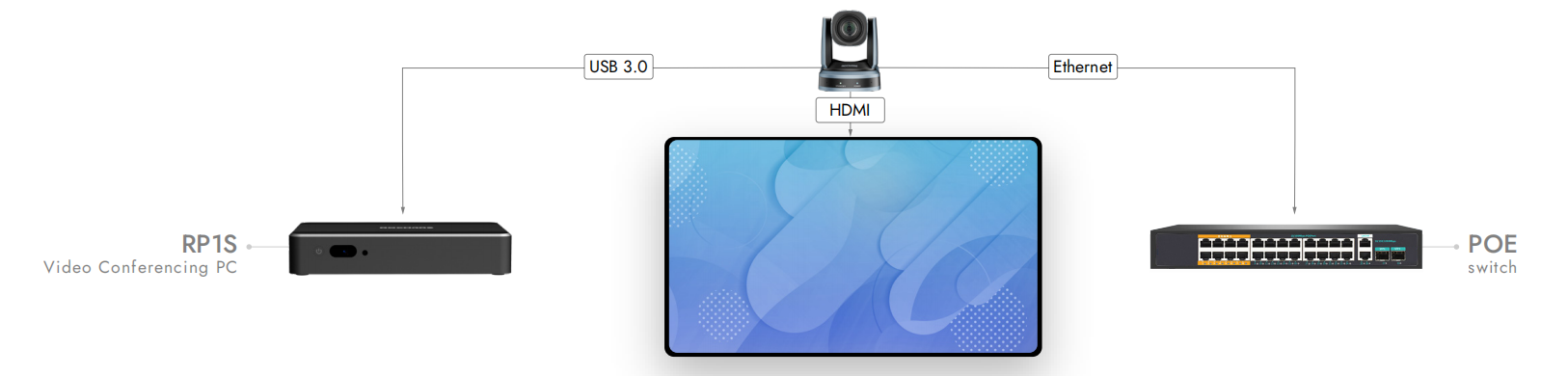 Deze camera ondersteunt HDMI, USB3.0 en netwerkinterfaces om gelijktijdig 4K ultra-hoge definitie videostreams uit te voeren, waardoor hij compatibel is met verschillende conferentieterminals die verschillende interfacevereisten hebben.