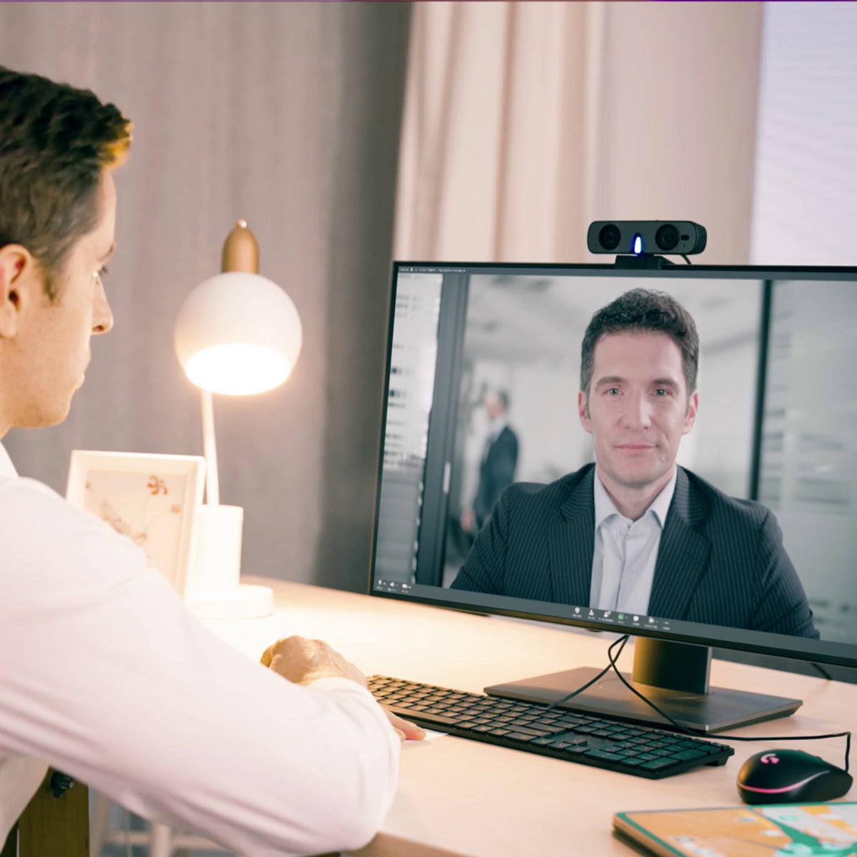 With Al intelligence recognizing your position and digital zoom function.RC08 keeps you on center stage during a video call with one short button press on the behind. And the led indicator and speaker prompts make it easier to set all on your own