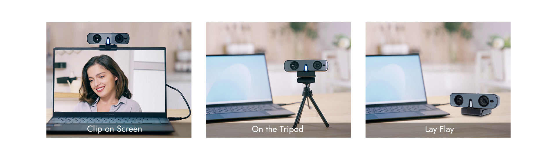 RC08 mounting options meet all your needs for different scenarios. The adjustable universal clip lets you attach the camera securely to your screen or laptop. You also can fold the clip and set the webcam on a desk or put it on the tripod quickly. You’re always ready for your next video call.